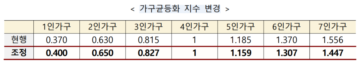 - ②1·2인 가구 보장수준 강화를 위해 가구균등화 지수를 개편