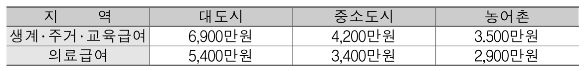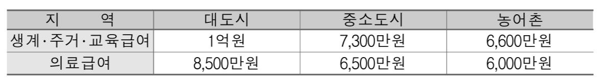 | 생계급여액 = 생계급여 최저보장수준(= 대상자 선정기준) |