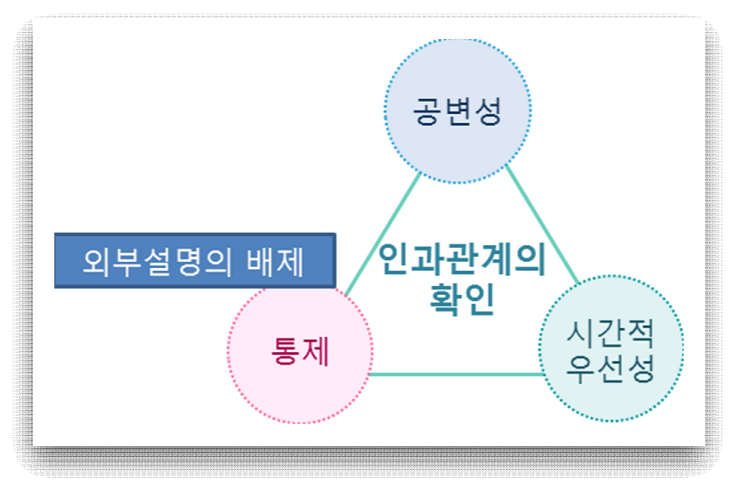 - 인과관계의 확인 : 공변성, 시간적 우선성, 외부설명통제