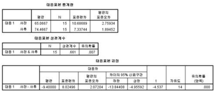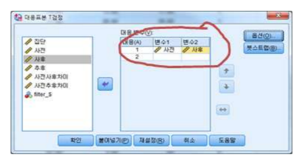 나. 대응표본 t-검증(동일 집단 간의 사전 사후 t 검증)