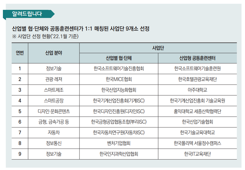 - 공동훈련센터 : 운영비 및 시설·장비비