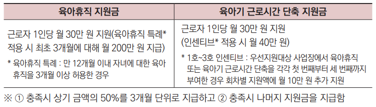 (육아휴직 지원금, 육아기 근로시간 단축 지원금)