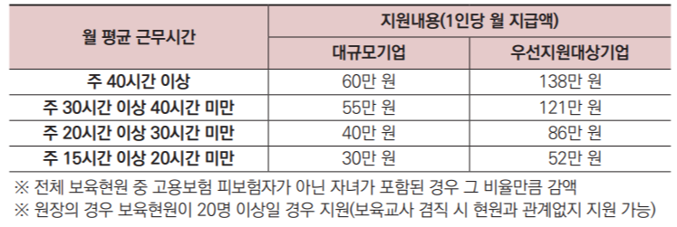대체인력 인수인계기간(최대 2개월)은 대체인력 1인당 월 120만 원, 채용 기간 동안 월 80만 원 지원