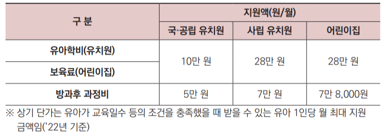 보호자의 소득수준에 관계없이 전 계층 유아학비·보육료, 방과후 과정비 지원