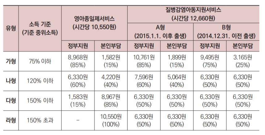 ※ 시간제보육료 4,000원 중 정부지원 3,000원, 부모 자부담 1,000원