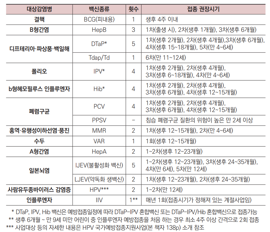 ※ 인플루엔자 백신은 생후 6개월~만 12세 어린이