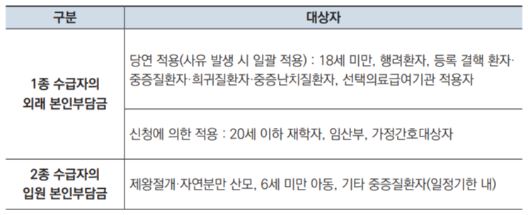 * 등록 중증질환, 등록 희귀·중증난치질환, 만성고시질환은 각 질환별 연간 455일, 기타 질환은 질환별 합산하여 연간 545일