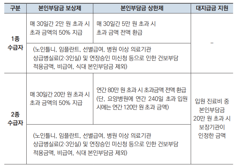 의료급여 본인부담금 보상제·상한제· 대지급금 지원