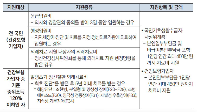 정신질환자 치료비 지원사업