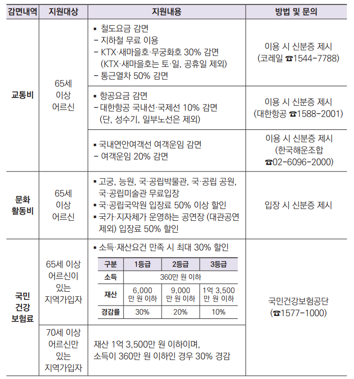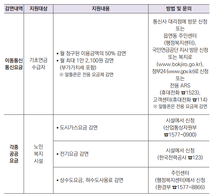 어르신을 위한 각종 요금 감면 혜택이 궁금할 때