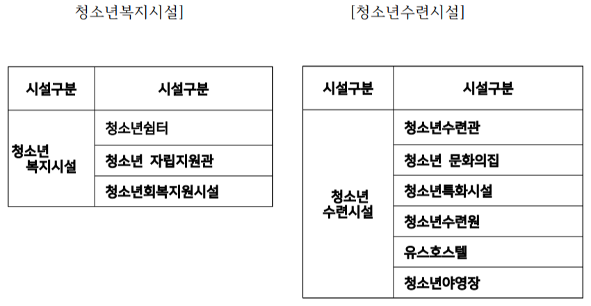 · 관련법 : 청소년기본법, 청소년활동진흥법