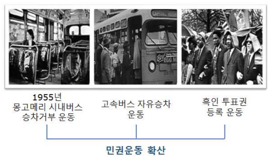 -흑인 민권운동 : 주류가 되는 백인이 흑인에게 가하던 인종차별과 불평등 철폐를 의도한 운동